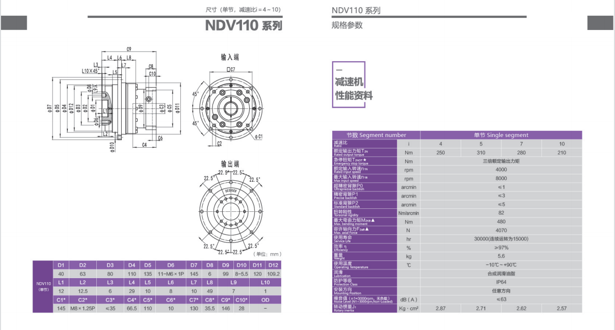 NDV110系列超精密背隙行星減速機系列:NDV110系列精密背隙行星減速器系列:NDV110系列標準背隙行星減速機系列: