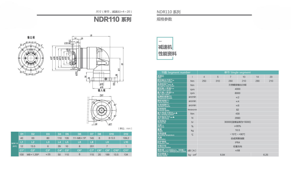 NDR110系列超精密背隙行星減速機系列(P0): NDR110系列精密背隙行星減速器系列(P1): NDR110系列標(biāo)準(zhǔn)背隙行星減速機系列(P2):