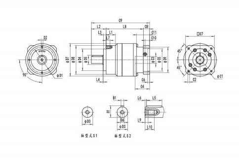NE070A系列超精密背隙行星減速機系列(P0): NE070A系列精密背隙行星減速器系列(P1): NE070A系列標準背隙行星減速機系列(P2):