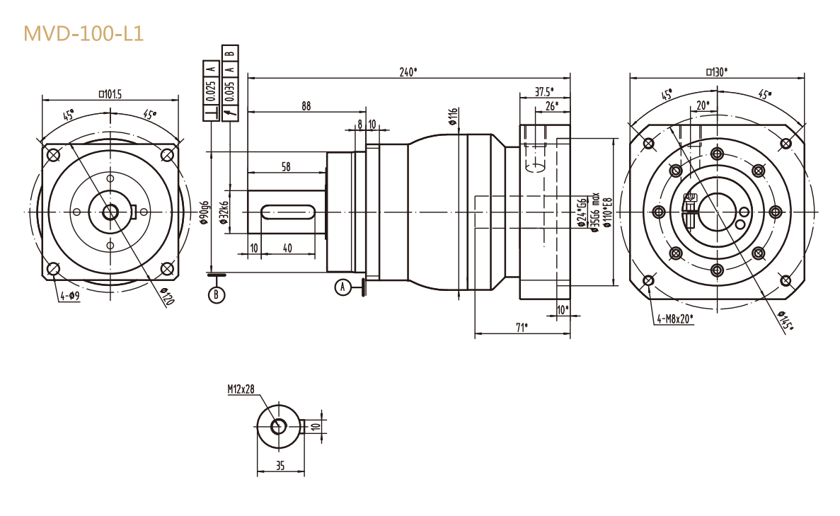 MVD-100-L1系列精密行星減速器型號尺寸與圖紙