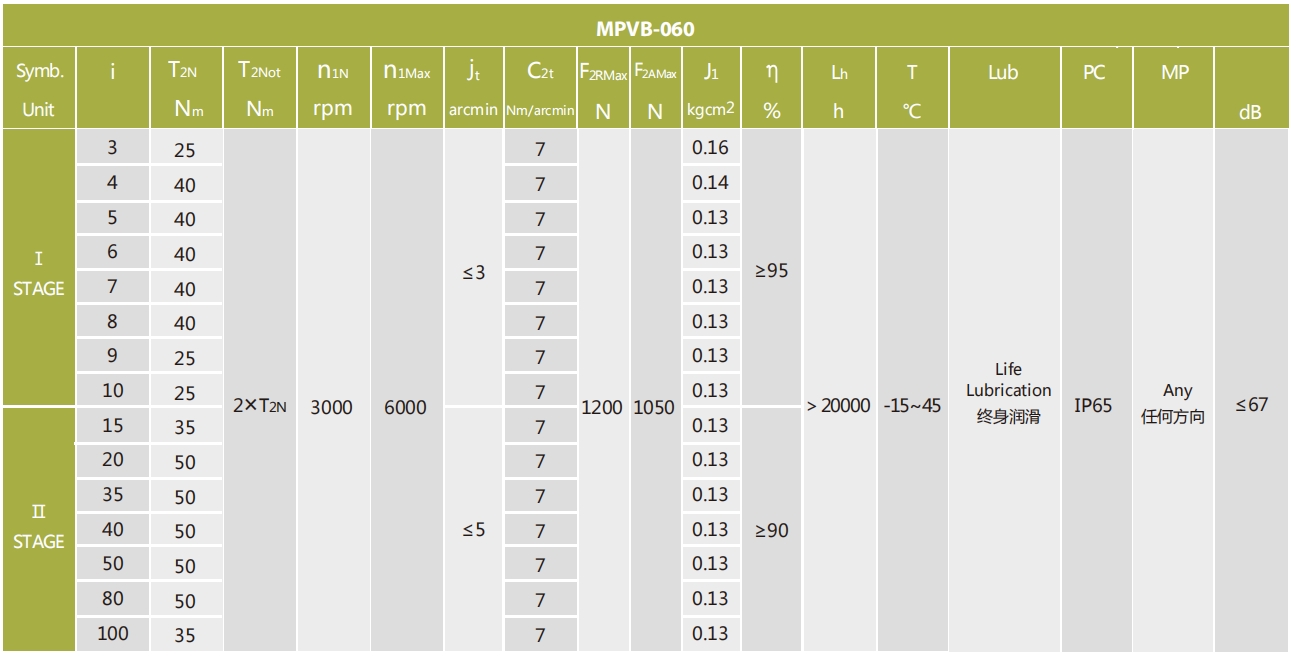 MPVB-060A-L1系列超精密背隙行星減速機系列(P0): MPVB-060A-L1系列精密背隙行星減速器系列(P1): MPVB-060A-L1系列標準背隙行星減速機系列(P2):
