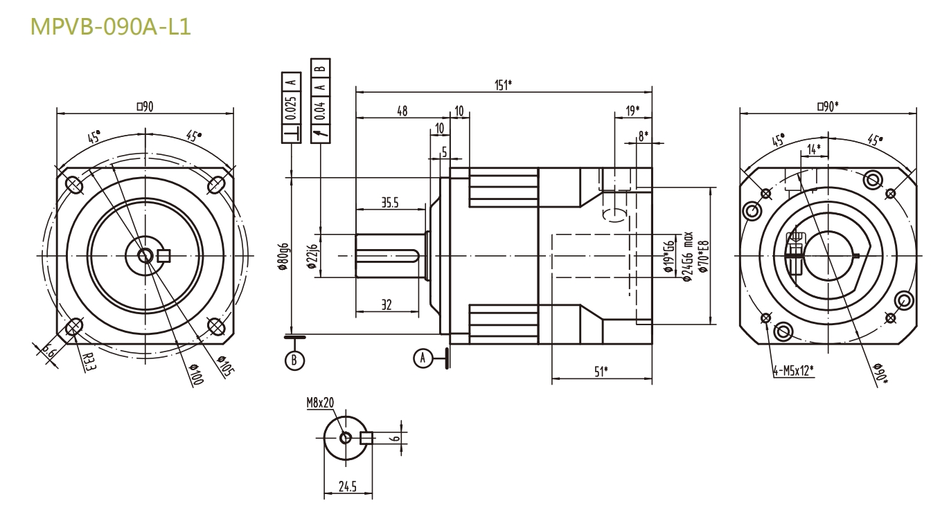 MPVB-090A-L1系列精密行星減速器型號尺寸與圖紙