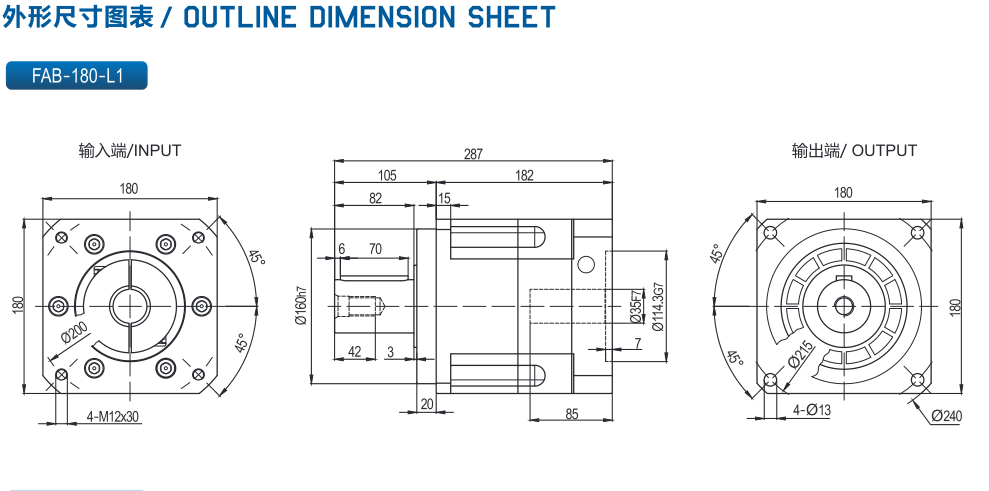 接下來給大家推薦一款客戶反饋比較好的一款行星減速機(jī):FAB180行星減速機(jī)屬于FAB(R)行星減速機(jī)特點:減速機(jī)輸出行星架,齒圈均采用分體式結(jié)構(gòu)設(shè)計,減速機(jī)各項參數(shù)均勻良好,產(chǎn)品加工工藝采用與高端產(chǎn)品相同,并且采用相同的高精密加工設(shè)備制造,性價比高。減速機(jī)齒圈、行星架、輸入軸均采用40Cr優(yōu)質(zhì)結(jié)構(gòu)鋼,經(jīng)熱鍛加工工藝,從而獲得更高的材料密度,比采用鑄造箱體、圓鋼等,具有更高強(qiáng)度剛性、韌性平穩(wěn)運(yùn)行、定位精度、進(jìn)給力、功率密度、剛度、易于安裝、設(shè)計方案多樣、可擴(kuò)展性。我們提供全方位的服務(wù),從初始概念到設(shè)計、安裝和調(diào)試,各個階段都為您提供全程支持,并確保長期穩(wěn)定地供應(yīng)備件。筒式鎖緊機(jī)構(gòu)設(shè)計,確保在高輸入轉(zhuǎn)速下保證同心度和零側(cè)隙動力傳動。