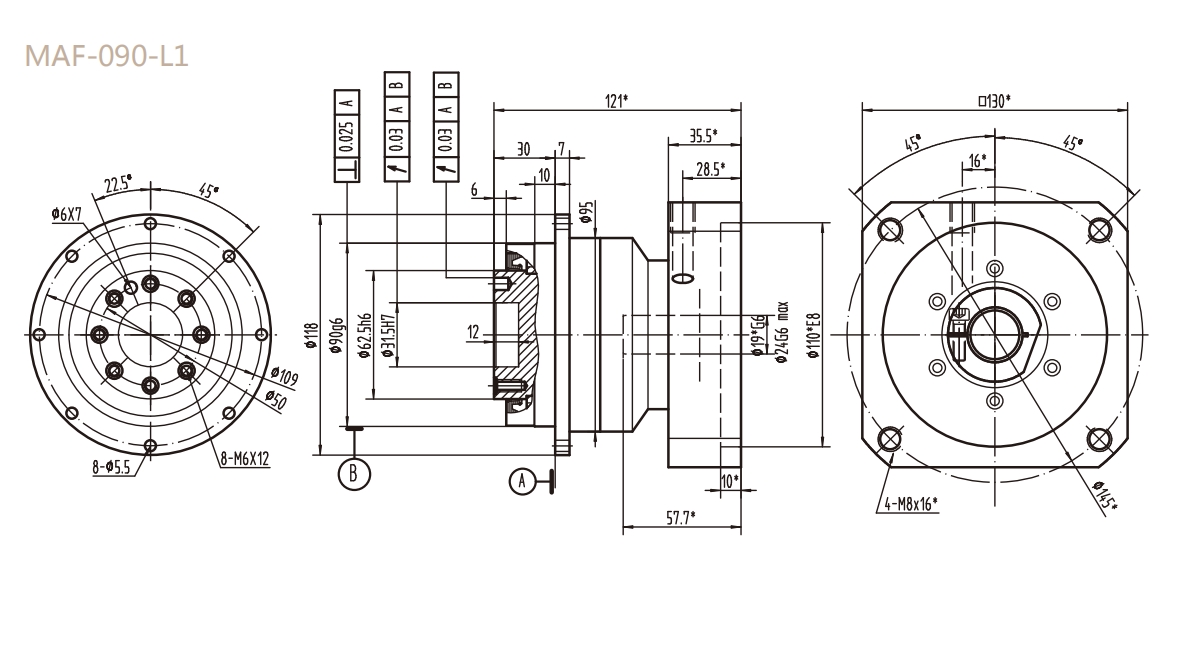 MAF-090-L1系列精密行星減速器型號尺寸與圖紙