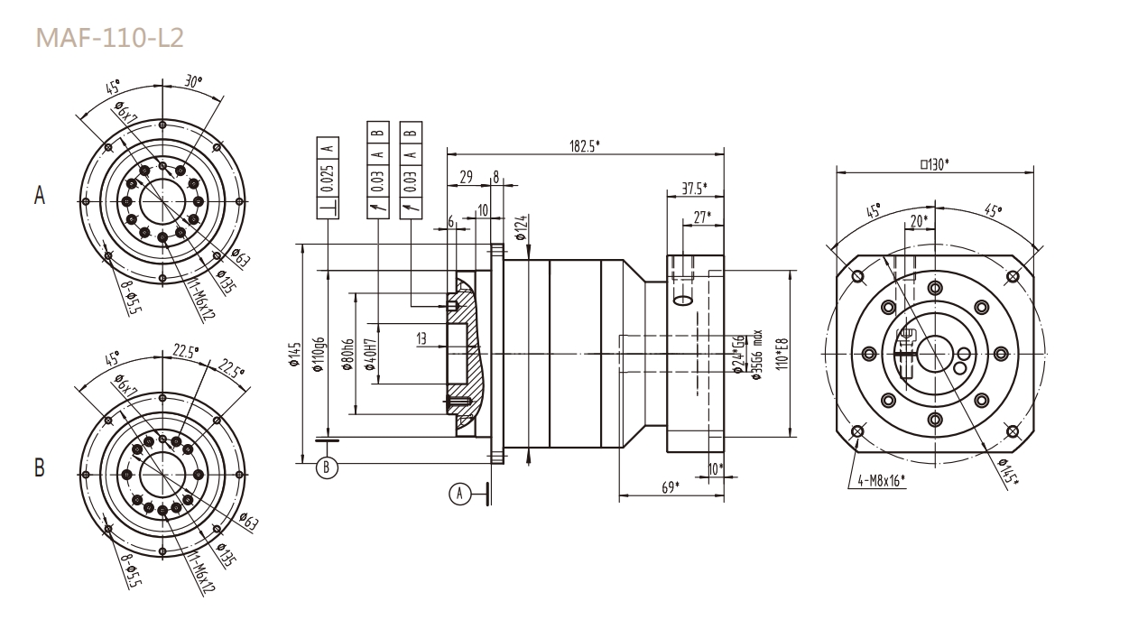 MAF-110-L2系列精密行星減速器型號尺寸與圖紙