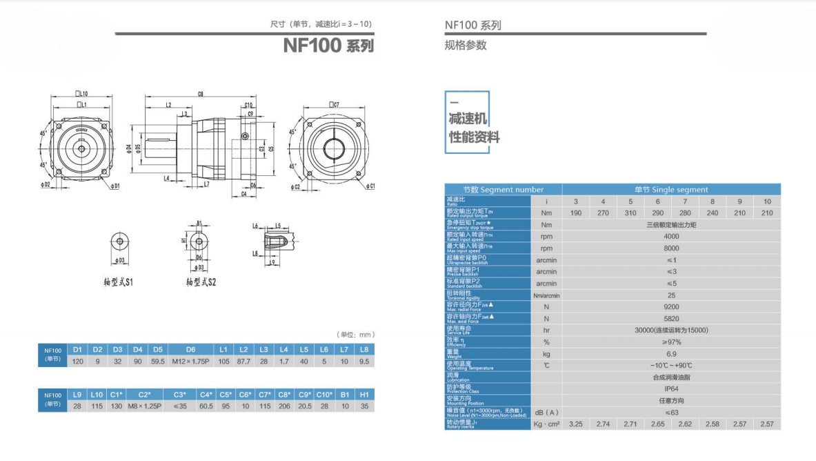 NF100系列精密行星減速器型號(hào)尺寸與圖紙