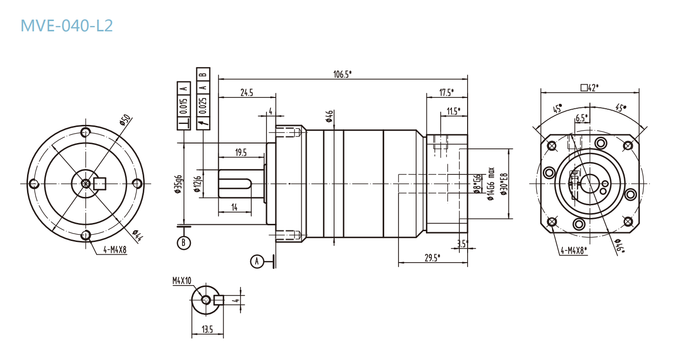 MVE-040-L2系列精密行星減速器型號尺寸與圖紙