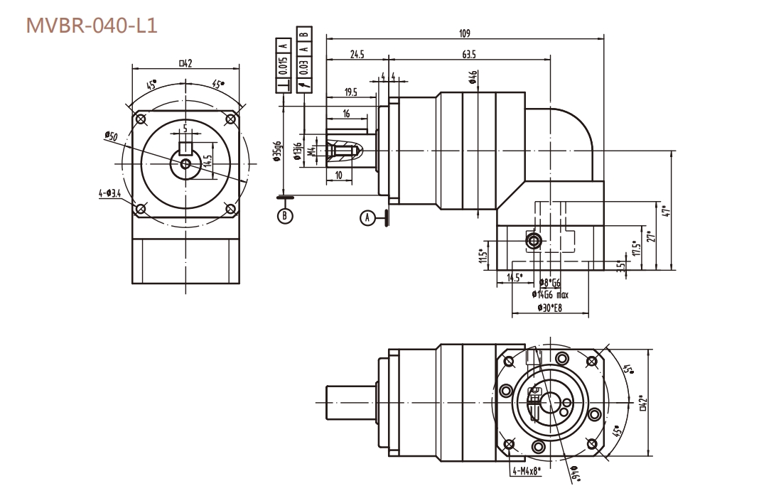 尺寸限制:食品加工設(shè)備通常在空間上有一定的限制,因此需要選擇尺寸合適的行星減速機(jī)。MVBR040 系列有不同的尺寸規(guī)格可供選擇,要確保減速機(jī)能夠安裝在設(shè)備的有限空間內(nèi),并且不會與其他部件發(fā)生干涉。