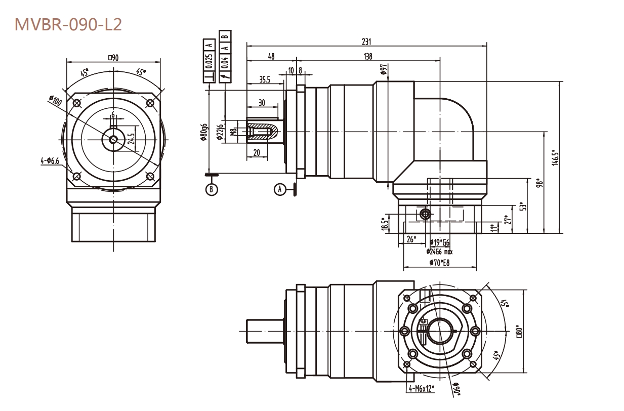 MVBR-090-L2系列精密行星減速器型號尺寸與圖紙