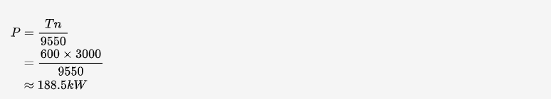 根據(jù)所需扭矩和轉速要求,我們選擇一款額定扭矩為 600N·m,額定轉速為 3000r/min 的直流電機。該電機的輸出功率 P 為: